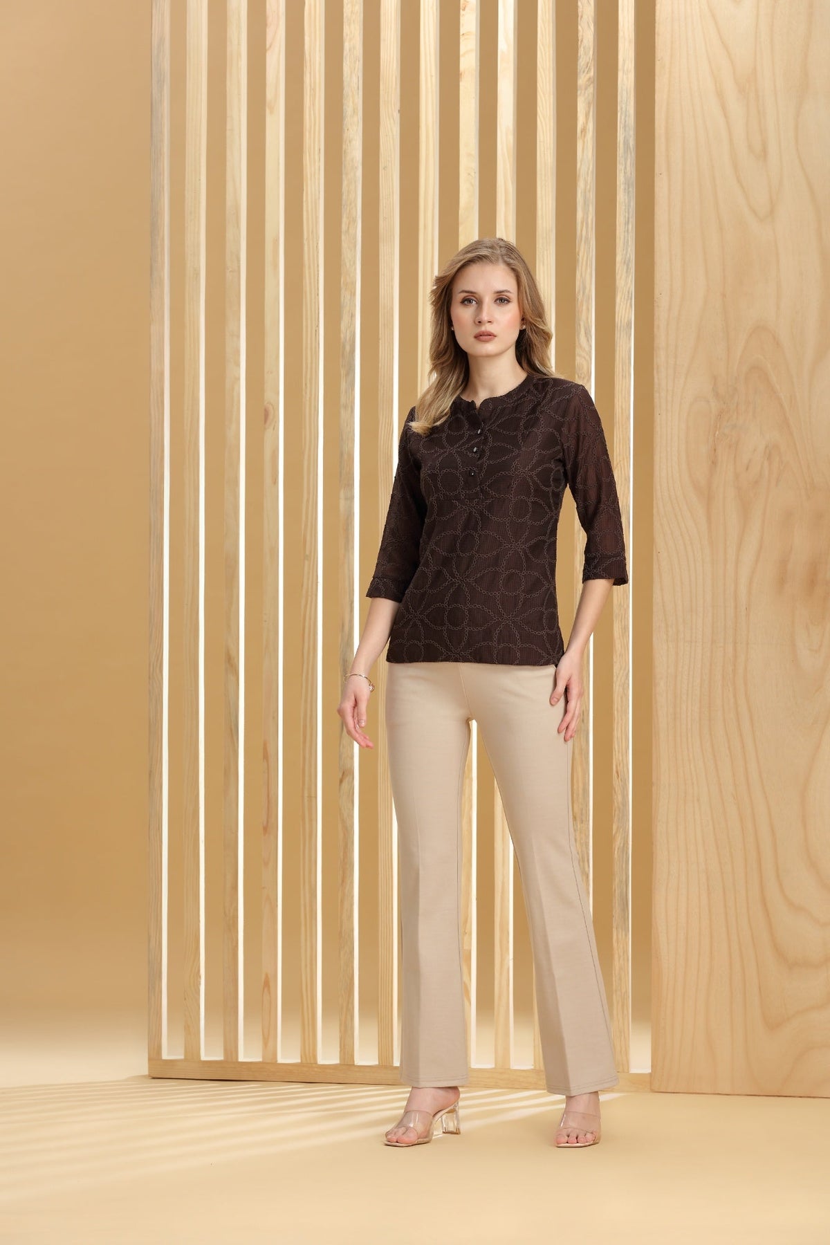Refined Brown TOP in the subtle luxury, featuring elegantly tailored fits and premium fabric.